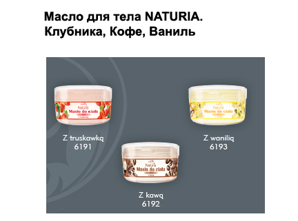В состав этих продуктов входят активные натуральные компоненты. Главным компонентом является – увлажняющий клубничный, кофейный и ванильный экстракт (в зависимости от вида продукта) .